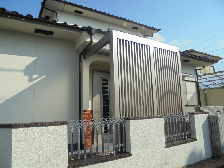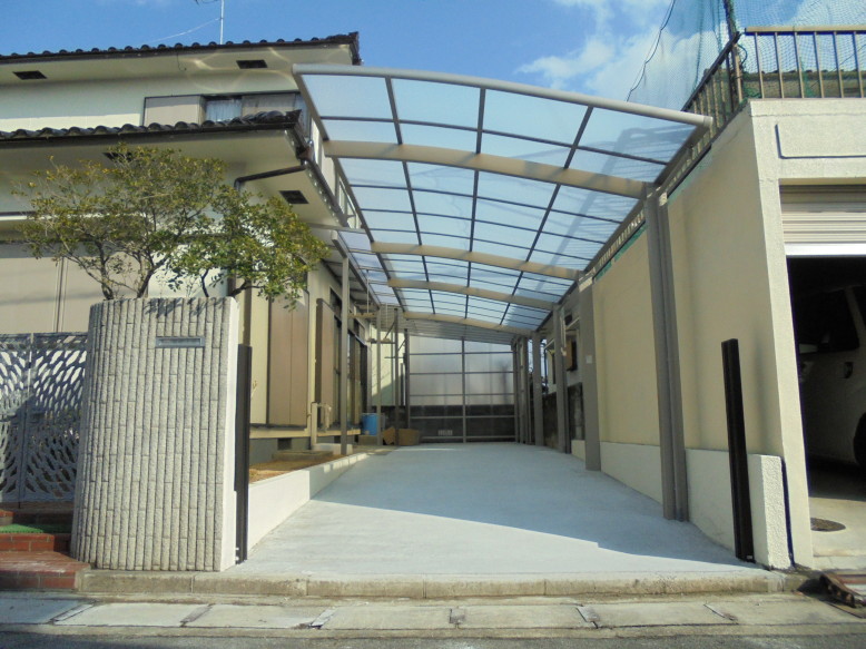 O様邸 外構工事 O様邸 外構工事を施工いたしました。 使用商品 テラス(物置)/スピーネF600 波板囲い カーポート/ネスカRレギュラー 玄関前/プラスG(Gフレーム・Gルーフ・Gスクリーン縦格子) カラー シャイングレー 参考金額 テラス(物置)32万/波板囲い16万/カーポート ネスカ38万/テラス19万/玄関前スクリーン50万